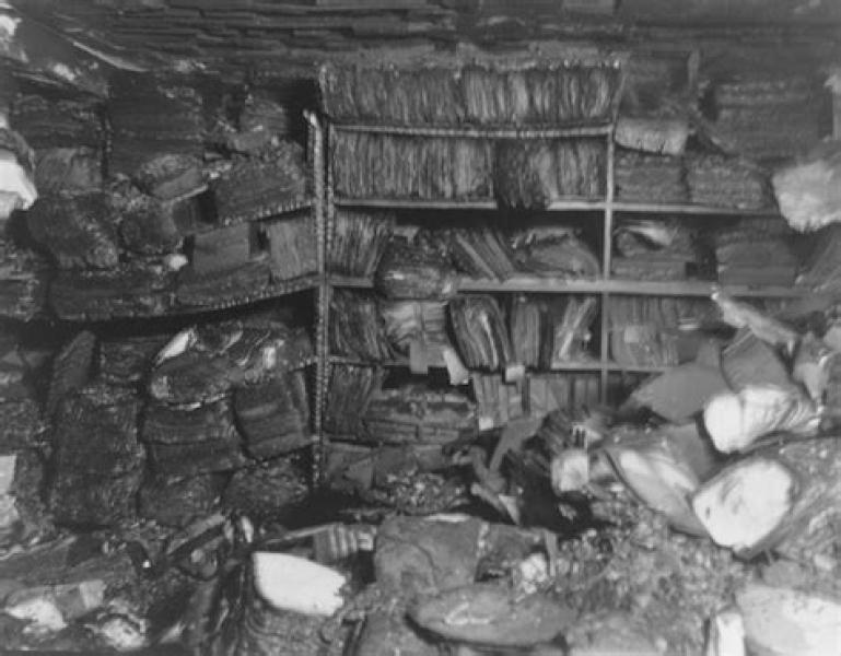 The cause of the 1921 fire was never determined. Although some speculate that a worker in the basement was smoking and set off the blaze. Others believe that bundles of papers spontaneously combusted causing the blaze.
