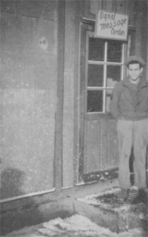 In the attached photo I was a 19-year-old staff sergeant and NCOIC of the communications for the 877th Signal Service Co., 9th AF at Rheims-Courcy Airdrome outside Rheims, France in 1944. I’m in front of the 8775H signal Sercice Co. Communications Section/Cryptographic/Message Center.