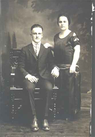 This wedding picture was taken around 1935 and helps to show the formal clothing styles for men and wedding attire for women.