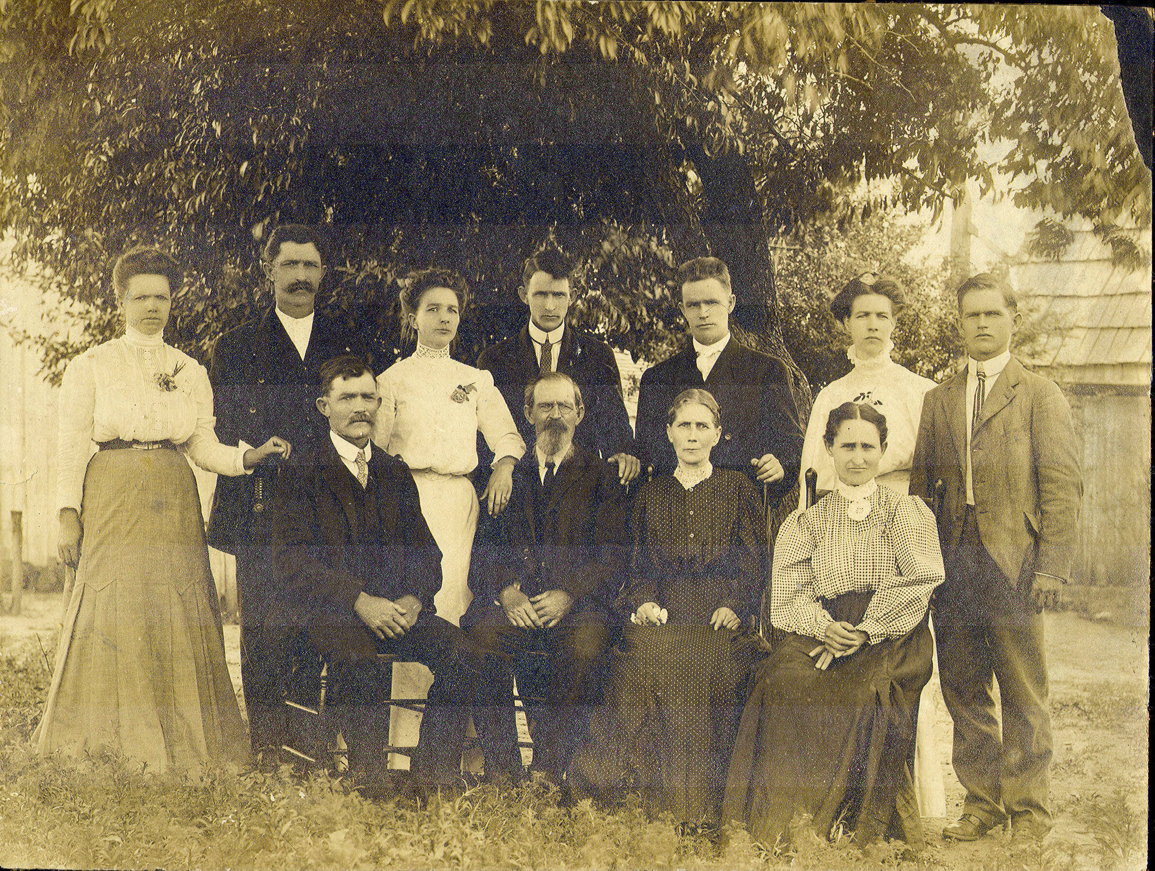 2nd row Left to Right Ida McDaniel; James Sutton; Katie Roberts; Harry Sutton; Claud Sutton; Fannie Edwards and Alanzo Sutton