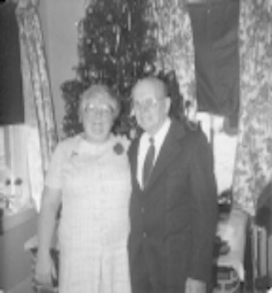Now for the fun Christmases. Our home was always decorated for Christmas. Mom and Dad always put up a real tree. Dad would tie it up with strong twine so that it would not fall over. It was always in the living room on a platform. Dad put the train up only at this time. It ran around the tree and through the little village Dad put up.
