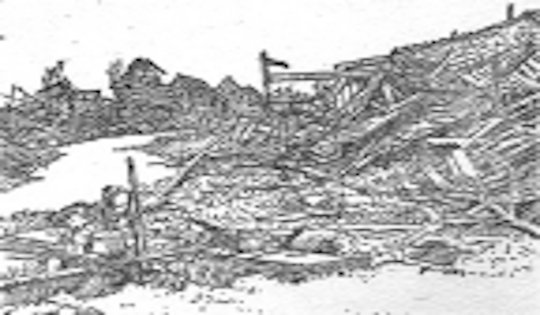 At one time they succeeded in gaining a toehold in the edge of the ruined village, but this advance force was later annihilated by the French barrage fire. This barrage, as it is called, is like a solid wall of death-dealing missiles. A person who views it from a distance sees it as a dense cloud of smoke, rolling with mathematical regularity along the field of battle.
