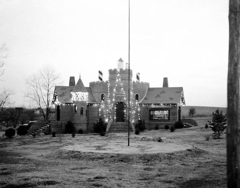 The first building in Santa Claus Town was Santa’s Candy Castle, a red brick building with all the elements of a real castle that looked as though it was lifted from the pages of a fairytale. It was sponsored by The Curtiss Candy Company, the creators of the Baby Ruth and Butterfinger candy bars, who were famous for their larger-than-life advertising campaigns. Santa’s Candy Castle was dedicated amidst tremendous fanfare on the cold, snowy day of December 22, 1935. With broadcast television still years away, the formal dedication ceremony was broadcast live by radio station WGBF of Evansville. Thousands attended the dedication including national business leaders, politicians, and most importantly, many very excited young children. The grand affair marked the opening of Santa Claus, Indiana’s first tourist attraction and the first themed attraction in the United States.