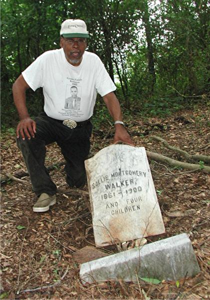 Below is my column for 7-17, "The Alice Walker Story" which will be the first of a series. The photo is of Alice's brother, Curtis, next to their great grandmother's (born as a slave) headstone. Great great grandfather, JM Montgomery, is also buried there along with a number of unmarked graves, many of which are probably children. With the help of several Putnam cemetery sleuths we recently located the cemetery in a remote overgrown wooded area which had to be cleared.