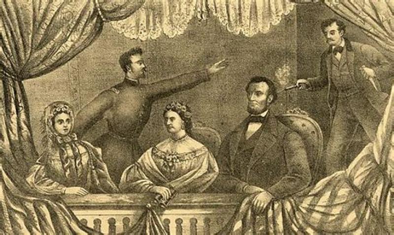 On the evening of April 14, 1865, while attending a special performance of the comedy, "Our American Cousin," President Abraham Lincoln was shot. Accompanying him at Ford's Theatre that night were his wife, Mary Todd Lincoln, a twenty-eight year-old officer named Major Henry R. Rathbone, and Rathbone's fiancée, Clara Harris. After the play was in progress, a figure with a drawn derringer pistol stepped into the presidential box, aimed, and fired. The president slumped forward.