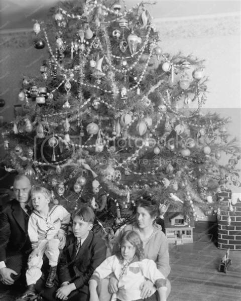Christmas Eve was then spent with the family gathered at Grandma and Grandpa's house. Later in the night, after everyone had gone to their own homes, the children would go to bed and then the Christmas tree was set up and decorated, and the children would not see it until Christmas Day. The tree was decorated with paper chains, and strings of cranberries and popcorn. The family then exchanged home made gifts to each member.