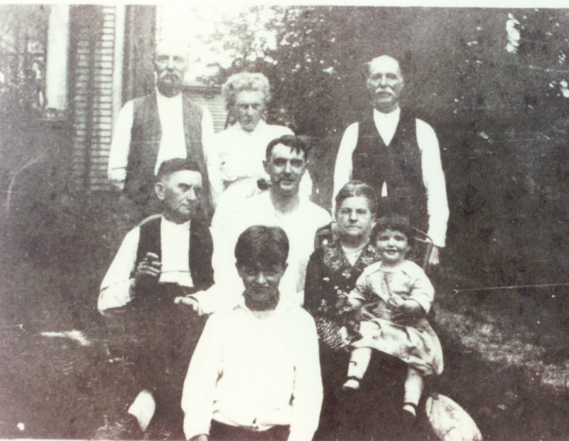 George S. Batho, Grandma Batho (parents of George Hosea Batho), William Batho (uncle of George Hosea Batho), Frederick Emanuel Hinkelbein (grandfather of Frances H, Batho Seiley), George Hosea Batho, Grandma Hinkelbein (grandmother of Frances H. Batho Seiley), Carl Batho (foster brother of George Hosea Batho), Jeanne Margaret Batho Sherman (sister of Frances H. Batho Seiley)