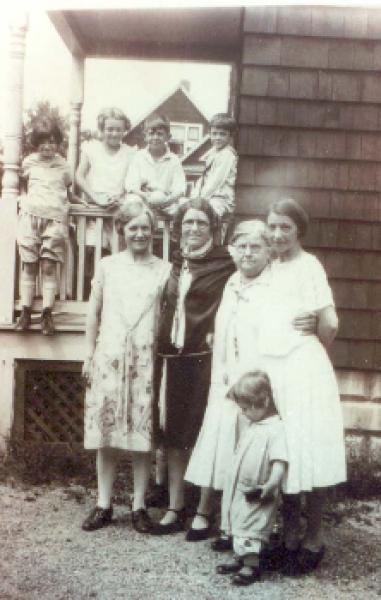 Arthur Crouch holding Jane CrouchCliff Thayer holding Bob ThayerGeorge Hosea Batho (11/30/1884-11/30/1970, born in East Boston, MA, died in Lake Charles, LA) holding Jeanne Margaret Batho Sherman (3/24/1919 3/18/1999, born in Boston, MA died in VT; approximately 5 months old in this photo) May Hinkelbein Crouch (oldest sister)Gertrude Harriet Hinkelbein Batho (middle sister) (11/14/1884 12/7/1953, born in North Adams, MA, died in Lake Charles, LA)Edna Hinkelbein Thayer (youngest sister)Ruth Thayer
