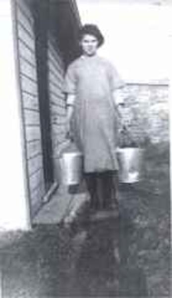 The girl in this photograph carrying milk is Marion Leedom.