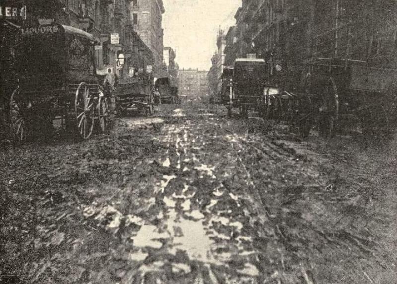 Urban streets were minefields that needed to be navigated with the greatest care. “Crossing sweepers” stood on street corners; for a fee they would clear a path through the mire for pedestrians. Wet weather turned the streets into swamps and rivers of muck, but dry weather brought little improvement; the manure turned to dust, which was then whipped up by the wind, choking pedestrians and coating buildings.