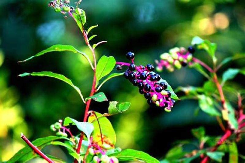 Native Americans also used pokeweed for a wide variety of internal and external medicinal purposes. Even though the berries of pokeweed are very popular with robins, mockingbirds, and bluebirds, they are dangerously poisonous to humans, along with the roots, seeds, and mature stems and leaves. Only the young shoots and developing leaves, (before they start to turn red), can be eaten and then only after a special process.