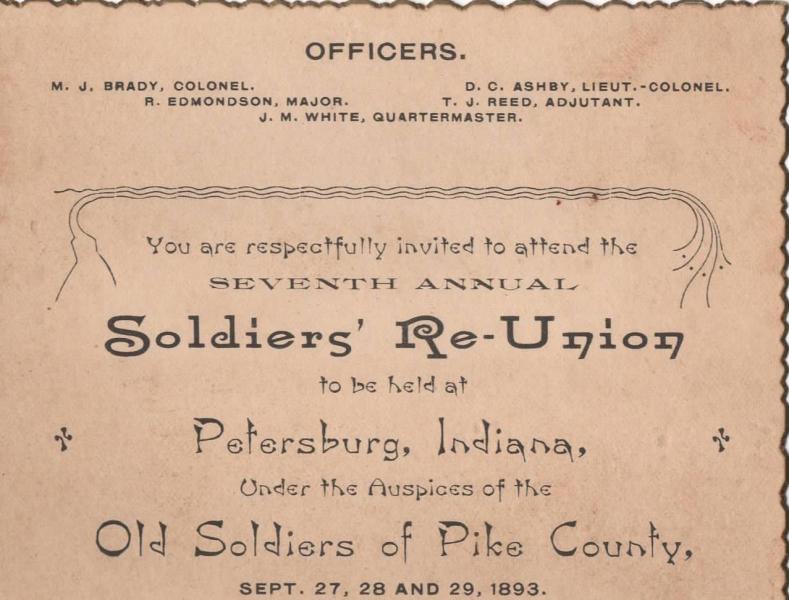 Our Preliminary research indicates some of the oldest images may be related to the Seventh Annual Soldiers’ Re-Union held at Petersburg, Indiana on Sept 27, 28 and 29, 1893.