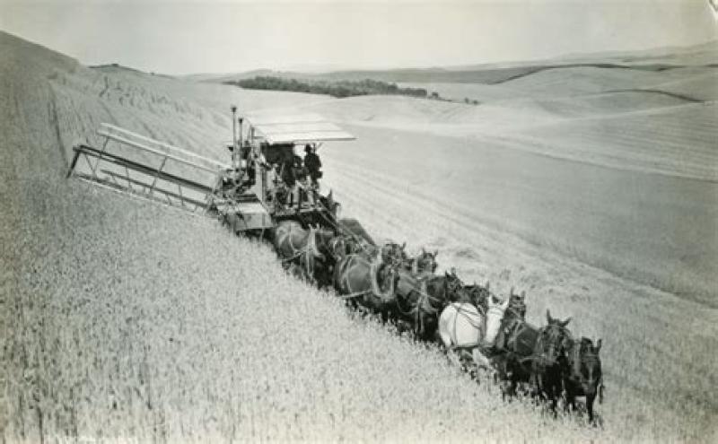 I think my favorite time of the year was the harvest. All the men and women from the surrounding farms would meet at one farm and work together to bring in the crops. It was fascinating to watch the giant horse drawn thrashers and combines work the fields. When one farm was finished we all went to the next one and continued until everyone’s crops were in. When it was our turn, all of us kids would help mom bring the table into the living room where there was more room to add several leaves to the table. The kitchen would be busy as a bee hive with as many as fifteen women and girls working to fix enough food to feed all the men working in the fields. This was the only time of the year that we had ice. My job was to make sure that I kept plenty of ice in each mans glass of tea. I liked this chore because it gave me a chance to flirt a little bit with some of the boys that were working with the men.