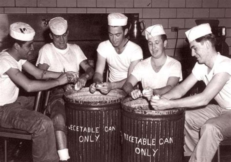 I remember going on KP and being assigned to peeling potatoes. We were supposed to dump the potatoes in the automatic potato peeler, let them spin for a while, then remove them and dig out the eyes by hand. Well, we decided that if we left them in a little longer, the eyes would be removed and we wouldn't have to worry. So we left them in. When they all came out the size of marbles, the mess sergeant was a little upset and put us on pots and pans. I know what you guys are going to say, yes, in the 50's at Fort Dix we were lucky enough to have automatic potato peelers, all the comforts of home.